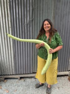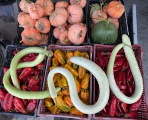 Starr is modeling an enormous cucuzza. We’ll be bringing some to our pop-ups. Let us know in advance if you want some. Thx A