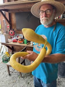 I’m planning on entering this hysterical cucuzza gourd in the Santa Cruz County Fair. It’s six feet long already, and still growing!