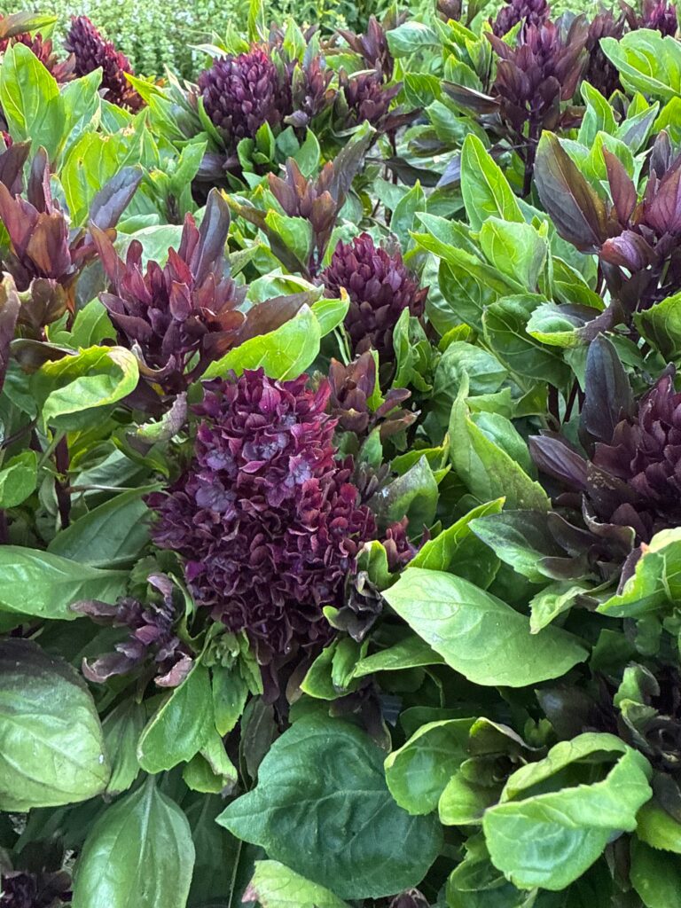 We enjoy trying new crops. This is a trial of an unusual basil called “Cardinal” that looks cool and smells great!